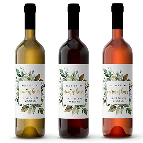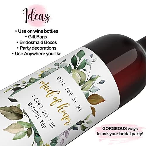 - Multi-use Greenery Petals Bridesmaid Wine labels: instantly turn ordinary wine bottles into unique gifts for bridesmaids, maid of honor and matron of honor. Create single wine gifts or a basket. Wedding party favors, gift bags and stickers for bridesmaid boxes.