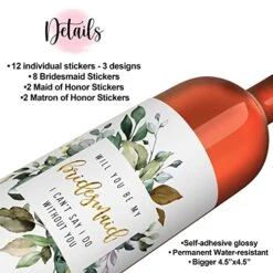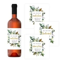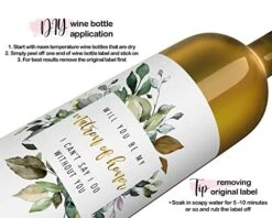 - Premium Quality Wedding Party Supplies: Leaves of Greenery bridesmaid wine bottle labels are professionally printed on self-adhesive glossy, permanent sticky labels. Wine labels are water-resistant. Bridesmaid Wine or Liquor bottle stickers measure 4.5” x 4.5” in size.