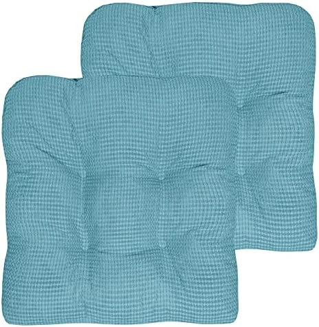 - PERFECT FIT FOR ANY CHAIR – Sit in comfort for years to come! Our chair pads are designed to fit all chairs. These cushions are a rounded square shape, or a square with curved corners, and measure 16″ x 16″ X 3. 25″ THICK! These dimensions are a perfect fit for almost all dining room, living room, play room, bedroom, and even outdoor chairs (we do not recommend leaving these chair pads outside, but may be used on outdoor chairs and brought in when done).