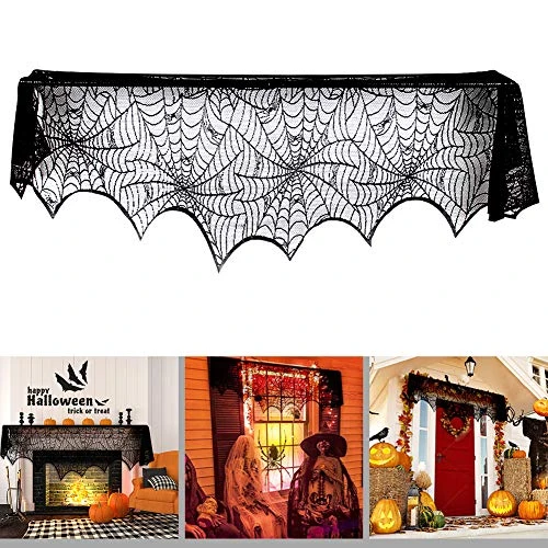 - ☀DIY HALLOWEEN HOME decorations: Unique and elegant lace scarf that can be used as a Halloween fireplace mantle, window halloween decorations, halloween porch decor, halloween room decorations, or halloween table decor. This popular Cobweb lace Scarf applies can be used throughout the year, not just for Halloween party decorations
