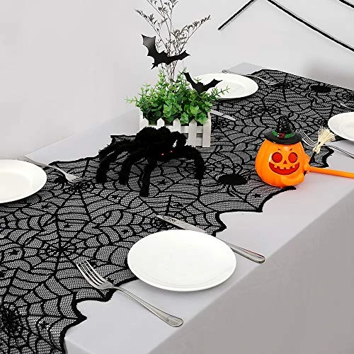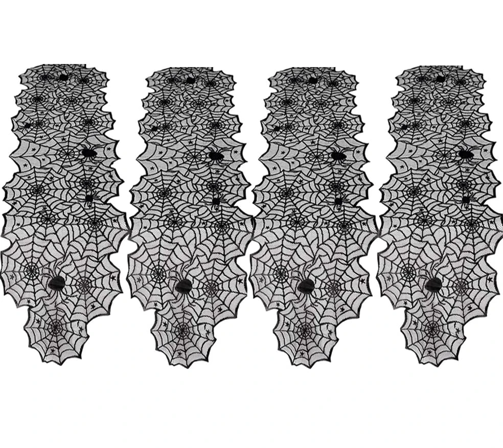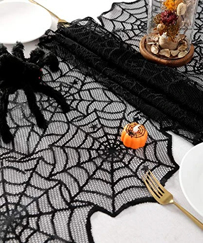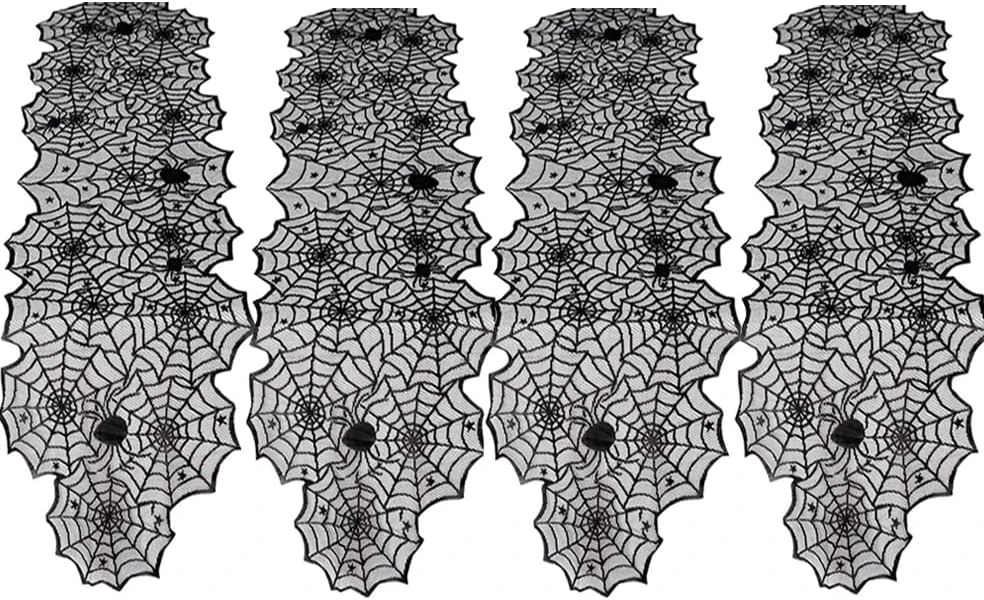 Halloween Table Runner Lace Black Spider Web Table Runners 18x72inch 4 Packs Linens Polyester Party Gothic Festival Fabric Decoration