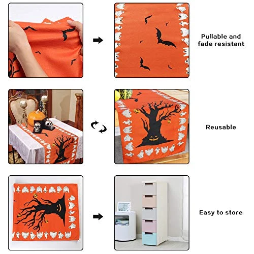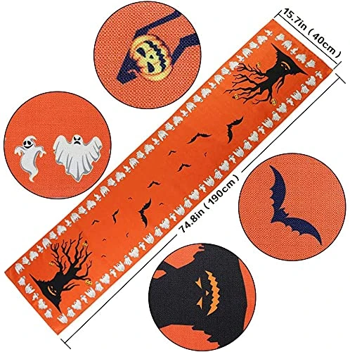 - ◆MATERIAL: Orange Halloween table runner is made of premium and soft imitated linen which is wrinkle-free and no smell, it is recommended to wash by hand