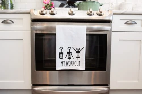 Handmade Funny Kitchen Towel – My Wine Workout Flour Sack Towel – 100% Cotton Funny Dish Towel – 28×28 Inch Perfect For Housewarming-Christmas-Birthday Gift