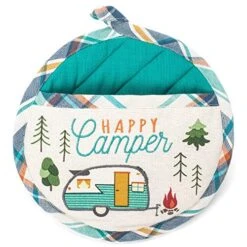 - Dishtowel measures approx 18 x 28 inches. Pot holder measures approx 8.5 x 9 inches.