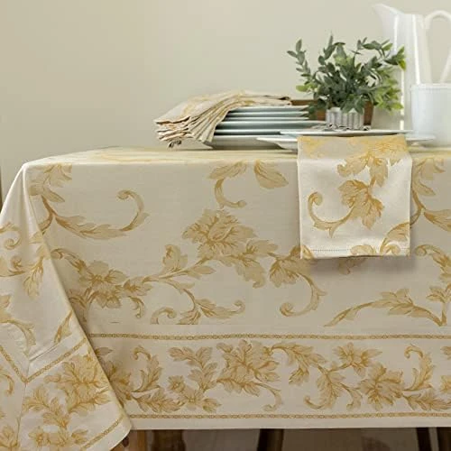 - Fabric Tablecloth with an elegant Damask pattern made of Polyester/Cotton. Heavyweight High-Quality Fabric Table Cloth.