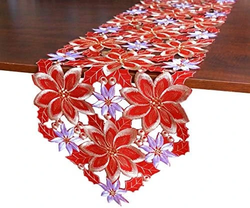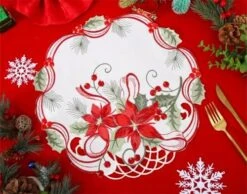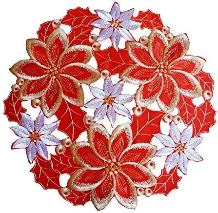 - Delicate Cutwork Embroidered Floral Christmas Flower Design add more Christmas atmosphere.