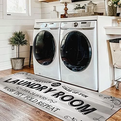 - 【VERSATILE LAUNDRY MAT】The versatile and practical laundry room rug runner is not only perfect for your washer and dryer in laundry room, it is also wonderful to be used as kitchen rug, hallway runner rug, bathroom rug, etc. Moreover, you can take it as gifts for your beloved family and friends as well. Very functional and worth-buying!
