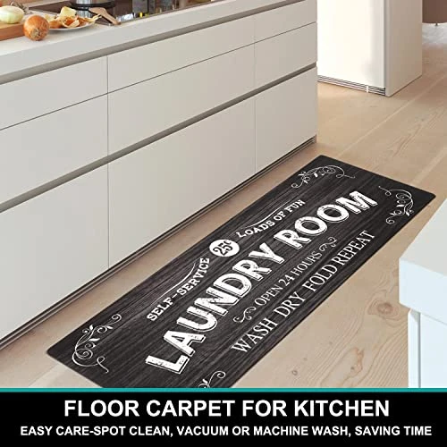 - 【NON SLIP LAUNDRY RUG】The rubber backing and heavy weight of this laundry floor mat make it stay in place on various floors, providing safe traction, and ensuring the safety of your family and pets. WARM NOTE: Please put the laundry runners for laundry room on clean, dry, smooth floor only, otherwise, it might slip.