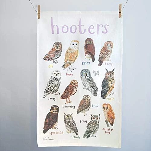 - Featuring a parliament of thirteen (13) owls from across the world – the Hooters tea towel tests your kn(owl)edge and raises a smile!