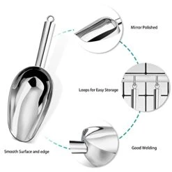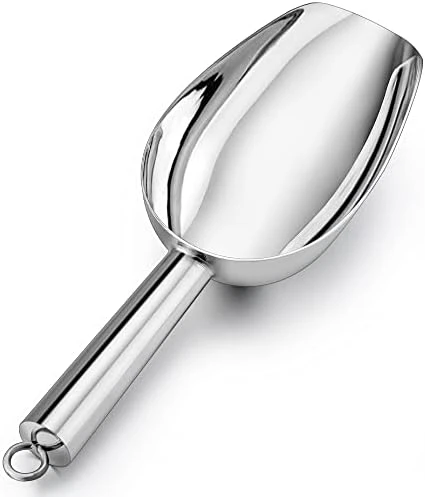 - Utility scoop, this 8oz stainless steel scoop is multi-purpose, perfect for scooping ice cubes, candy, dry goods, spice, cereal, popcorn, coffee beans, rice, grain, flour, pet food, meet your various requirements