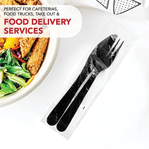 - The pre-assembled and wrapped kit helps facilitate the distribution of utensils at large gatherings or in cafeterias and restaurants
