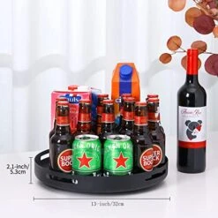 - ✅【ANTI-FALL EDGE & EASY TO USE】 The 2.1-inch height edge prevents items from falling off, both tall and short bottles can be easily stored. With a slight turn, the inside items can be easily taken out.