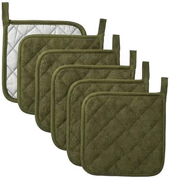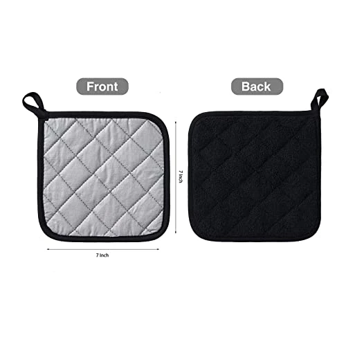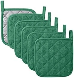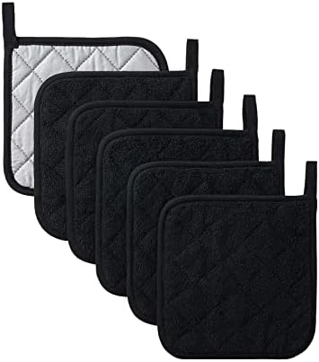 - QUALITY PRODUCT: 100% terry looped cotton on one side and a heat resistant silverstone lining on the other with pure cotton filled. Hanging loop allows for easy storage, easy to clean, durable.