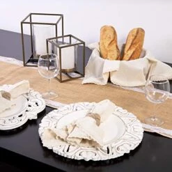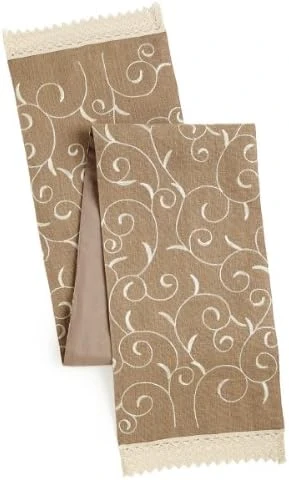 - INCLUDES: Two COTTON CRAFT Iris Jute Lace Border Table Runners, 12 inch x 108 inch – Natural & White