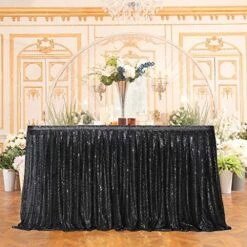 - Material: The fabric is densely covered with 3mm sequins, and the back is made of gauze, ensuring the softness of the table skirt. As the only sequin table skirt on the market, our table skirt is more shiny and elegant.