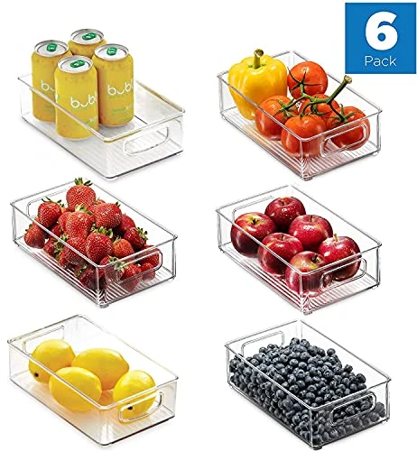 Kapebow Kitchen Storage Organizer Bins – Home Pantry Organizers 6pcs Refrigerator Organizer Bins Plastic Fridge Freezer Containers Cabinets Bin BPA Free Clear Plastic Pantry Storage Racks