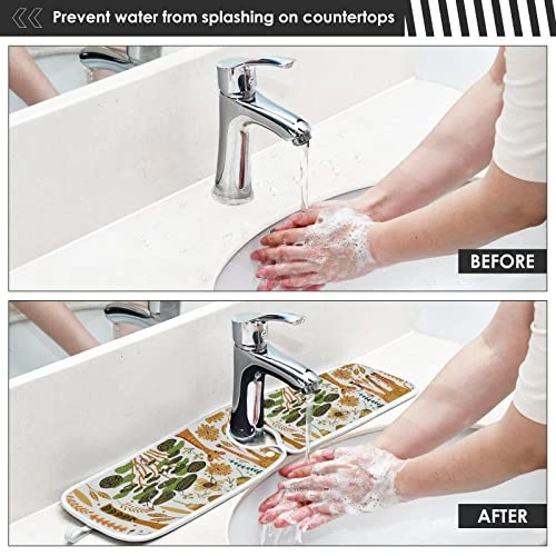 - A Great Gift : Due To Its Stylish Design And Strong Water Absorption,This Kitchen Faucet Absorbent Mat, Can Be a Great Gift For Your Family And Friend, housewarming parties, weddings, birthdays and other special occasions.