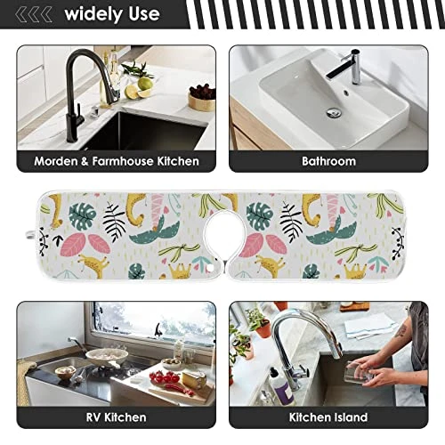 Kcldeci 2 Pack Faucet Mat Splash Guard For Kitchen Sink,Cute Giraffes And Tropical Plants 30×5 Inch Faucet Handle Drip Catcher Tray Absorbent Mat Fast Dry Mat For Kitchen, Bathroom