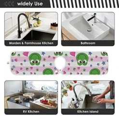 Be the first to review “Kcldeci 2 Pack Faucet Mat Splash Guard For Kitchen Sink,Frog Heart Stripe 23×5 Inch Faucet Handle Drip Catcher Tray Absorbent Mat Fast Dry Mat For Kitchen, Bathroom” Cancel reply