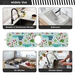 Kcldeci 2 Pack Faucet Mat Splash Guard For Kitchen Sink,Frog Turtle Crocodile 14×5 Inch Faucet Handle Drip Catcher Tray Absorbent Mat Fast Dry Mat For Kitchen, Bathroom