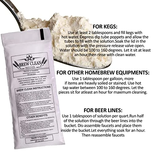 - HOW TO USE WITH BEER LINES: Use your Kegconnection Kegerator beer line cleaning kit with this refill of Brew Clean to clean your beer lines. Use one tablespoon of solution per 26 ounces or 3.25 cups of hot water. Run half the watery solution through your beer lines into a bucket. Dis-assemble your faucets and place them in a bucket with the solution. Let everything soak for about an hour. Run the remaining solution through your lines followed by clean water. (BUCKET & KIT NOT INCLUDED).