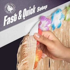 - TROPICAL PARTY: Get ready to transform your party into a tropical paradise with these 9 ft table skirts! The luau-themed decorations feature a tiki hut and tiki table skirt made of high quality, super soft yet durable faux straw polyester with silk faux flowers.