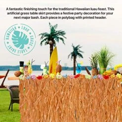 - USE IT FOR: A fantastic finishing touch for the traditional Hawaiian luau feast. This artificial grass table skirt provides a festive party decoration for your next major bash. Each piece in polybag with printed header.