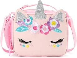 - 【Perfect Gift for Little Girls】This unicorn lunch box for girls comes with a lovely horn and ears, it’s a hit and trendy element among little girls. Colorful embroidered flowers and cute eyelashes also add charm, that’s so cute and easy for matching to wear with different kinds of backpacks and brings so much fun to your little princess at lunchtime. Perfect gift for your daughter, granddaughter, niece, etc. Your little one will be obsessed with this fashion and practical school partner.