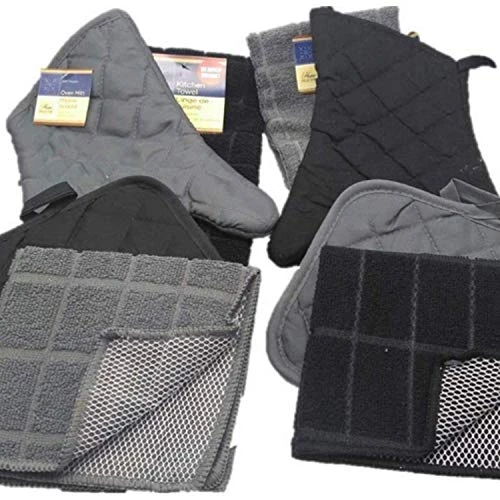 - ☑️ ADD A TOUCH OF SIMPLE to your kitchen décor with these Thick black and gray cotton-quilted oven mitts and pot holders are a staple of every busy kitchen!