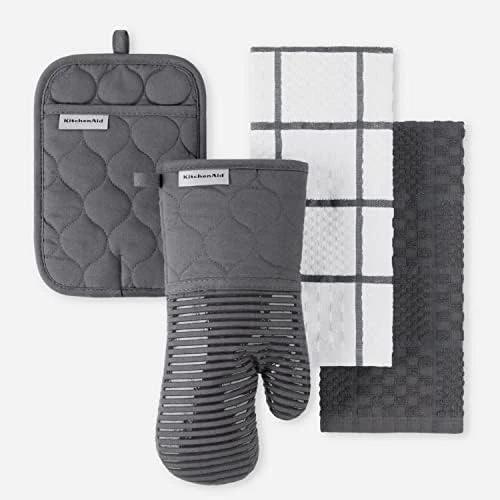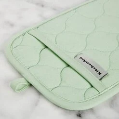 - DURABLE & HEAT RESISTANT: Made of 100 percent durable, heat-resistant cotton, the pot holder and oven mitt help protect hands from the heat while you’re cooking and baking.