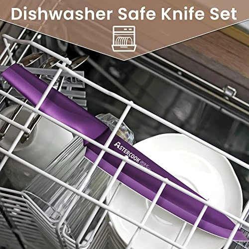 - 【Dishwasher Safe Knife Set】 The colored coating helps prevent knives from rusting due to direct contact with oxygen. Combined with the non-stick coating, knives stay clean all day long!