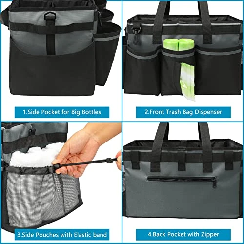 - ✅[6 Functional Pockets] A front bag dispenser and 2 individual front pockets for storing bags and other small tools. A zip back pocket can store personal things safely. Side leak-proof pocket is great for larger things like bottles. Plus a side mesh bag with a elastic ties, you could carry and fix your supplies like brushes etc.