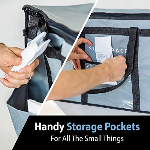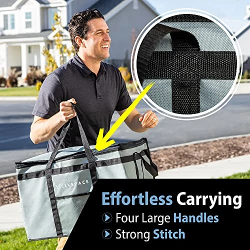 - 🍟 Need A Large Food Bag, Too? Whether you need piping hot pizza bags for delivery, a reusable catering bag, 15” tall grocery cooler bag for your family shopping, or larger door dasher accessories to hold more food, try the Sleek Space XL Delivery Bags now before your next takeout.