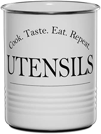 - FARMHOUSE KITCHEN DESIGN- Add the farmhouse vintage touch to your home decor with this stylish utensil holder. The rustic finish on this utensil caddy will look perfect in your kitchen