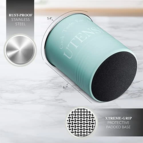 - SPACE-SAVING ORGANIZER – This Kitchen Utensil Caddy is designed with a simple yet perfect look to store various cooking utensils such as spatulas, ladles, spoons, tongs, whisks, knives, chopsticks, cutlery, masher, fork, and more.