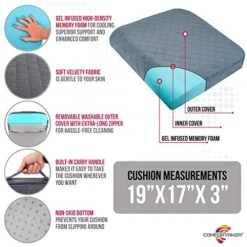 - GEL-INFUSED MEMORY FOAM molds to your body and contains gel that is specially designed to wick heat away from your body and keep you cool; NON-SLIP BOTTOM – With non-skid design, this pillow stays right in place without any ties; Unlike some other products on the market with the dark bottom, this non-slip cushion won’t stain your light colored leather or vinyl office chairs, recliners, sofas or car seats;