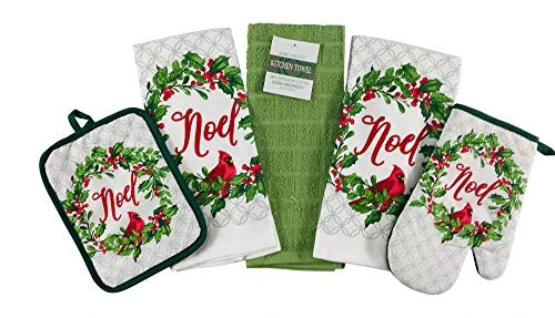 - COMPLETE SET INCLUDES: Two (2) Kitchen Towels and One (1) Oven Mitt and One (1) Pot Holder for Unique Fall or Thanksgiving decor! Complimentary solid green terry towel from Home Concepts.