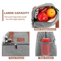 - 👉 Dimension: The size of the lunch tote women is 10.6 inches (length) x 6.3 inches (width) x 8.5 inches (height). Lunch bag looks small but the main compartment is large capacity and can fit lunch containers and drinks. You can store your sandwichs, salad, snacks, drinks and fruits in one bag.It can fit all your lunch need.