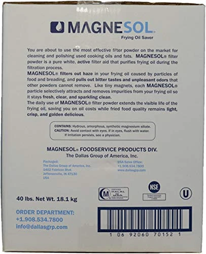 - 4. Do you want to double the life of your frying oil? Do you want to cut your costs on frying oil? Do you want cleaner frying oil and more delicious fried foods? POUR – DRAIN – RECIRCULATE – PUMP – enjoy. Filtering daily with MAGNESOL XL gives you more than twice the days of optimum frying quality