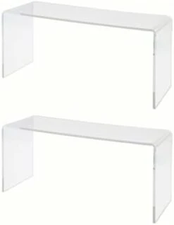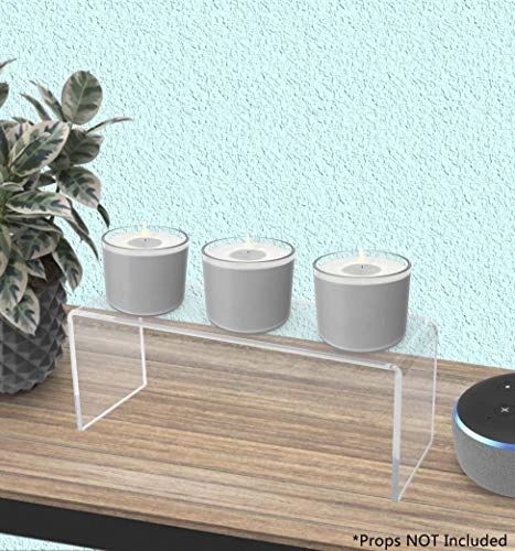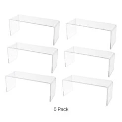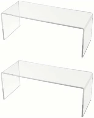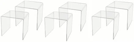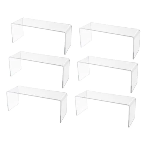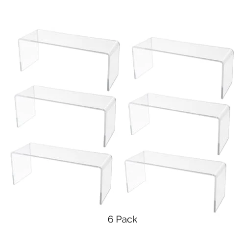 6 Pack 10″ x 4″ Riser Display Stand Retail Product Display Platform Product Features: Overall Dimensions: 10.25″W x 4″D x 4.25″H. Thickness: 3/16″, .177 or 4.5MM *All sizes are approximate Showcase Display Riser Stand Made from durable and thick material, elegantly holds items such as desserts, plants and other retail products Risers are a great countertop store fixture to display merchandise Proudly made with premium high quality acrylic Looking for a durable and elegant means to display your prized merchandise? Our acrylic U-Shaped Risers are effective at displaying and showcasing products to create eye-catching displays your customers can’t resist! These acrylic display risers create a sturdy platform to showcase a variety of products and merchandise. You will often see this type of display showing items such as jewelry, cosmetic goods, collectibles and other merchandise in retail stores, boutiques and specialty shops. These are also used in bakeries and buffets to show their confections such as cupcakes, cakes, cookies and more! These risers are great for lifting and displaying small plants and succulents. Purchase multiple risers for nesting or varying heights to create an organized presentation that can also save on counter or table space. These sleek stands are designed to bring attention to a wide variety of merchandise and catch the attention of potential clientele. For an even more dynamic visual experience, users can place a runner or cloth over the display. Museums and galleries use a showcase riser to elevate antiques, artifacts and small sculptures. The showcase possibilities are endless for these multipurpose portable, sturdy acrylic risers! You can also find these at trade shows, conventions, expos and events for displaying props, art and merchandise! *All sizes are approximate *Tolerances: Thickness +/- 10%