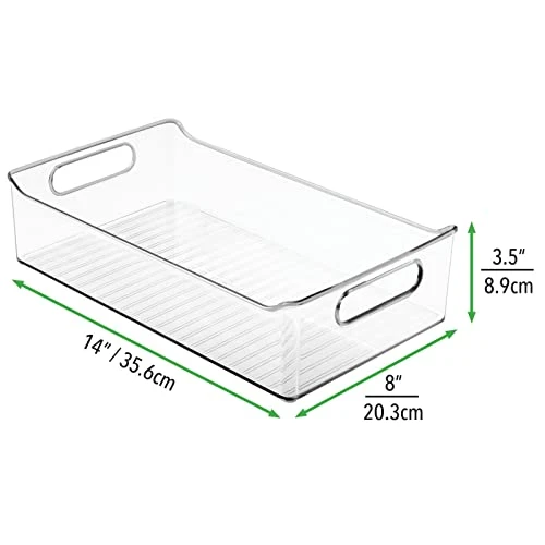 MDesign Plastic Kitchen Pantry Cabinet, Refrigerator Or Freezer Food Storage Bins With Handles – Organizers For Fruit, Yogurt, Drinks, Snacks, Pasta, Condiments – Set Of 4 – Clear