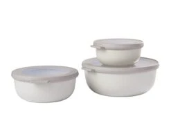 The Multi Bowl has been designed specifically for a complete ‘circle of use’ and now comes in a handy set of 3. The food in these bowls can be stored in the freezer or fridge, heated up in the microwave (without the lid) and can then be served at the table. The Multi Bowl is made of indestructible material and the transparent window in the lid allows you to see the contents of the bowl clearly. The innovative, flexible lid is 100% airtight and leak proof. The food will therefore stay fresh longer and can be kept in the bowls and taken along when you are on the go. The Multi Bowls are practical and easy to store away because they can be stacked when they are filled and nestled together when they are empty. Includes: 1x Dia12cm x D6cm, capacity 350ml, 1x Dia15.5cm x D7cm, capacity 750ml and 1x Dia19cm x D8cm, capacity 1250ml. Dishwasher, freezer and microwave safe. Other colours and sizes available. All sizes sold separately.