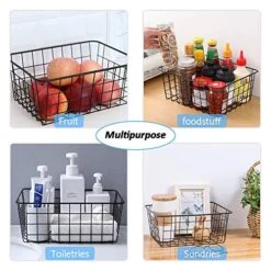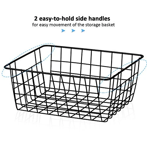 - 🍒2.Portable Wire Storage Basket Design: The basket for pantry storage has 2 easy-to-grip side handles, makes you easy to carry or move the pantry baskets to other places, and open wire design allows you to quick see the items inside the basket, which makes it easy to find item you need. With our pantry baskets for storage, you can store items neatly in one place, which not only looks organized, it also saves time and storage space for finding items.