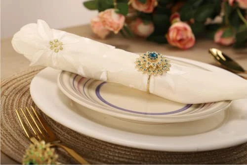 - 💎High-quality material; The metal flower napkin ring buckle is made of durable alloy, the surface is electroplated, the crystal is artificially inlaid, the structure is stable and durable. Handmade pearl napkin rings will shine in the lights and candles, beautifully designed to bring elegance and warmth to your table and make your food look tastier.
