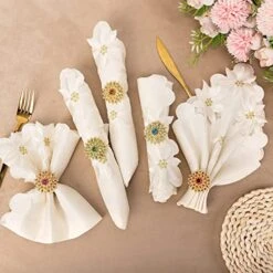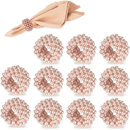 - 💎 Napkin Ring Set: Contains a set of 6/10/12 metal napkin rings, the metal flower napkin holder measures 1.57 inches in diameter, the flowers are about 1.57 inches in diameter, the pearl napkin rings are 1.57 inches in diameter and about 1 inch in height, and Featuring a stretchy, elegant design and multi-color, it fits most napkin and table styles.