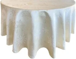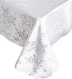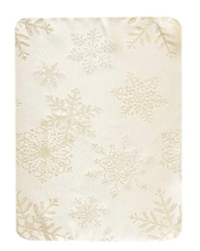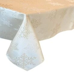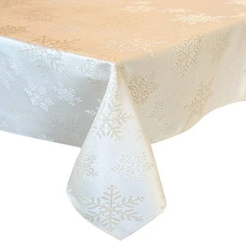 - Metallic Snowflake Christmas Tablecloths feature a gold or siver metallic snowflake print on either a white or ivory background