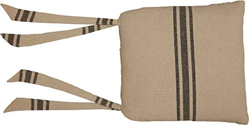 - The Mill House chair pad adds simplicity and a soft, overstuffed look with rich texture and casual black grain sack stripes running horizontally across the fabric. The accent reverses to the same grain sack stripe design ensuring a longer life and added durability. Fabric ties keep it securely in place and the straight, no-frills knife edge keeps the look crisp and clean. You’ll love the rustic farmhouse style the chair pad brings to your existing furnishings.
