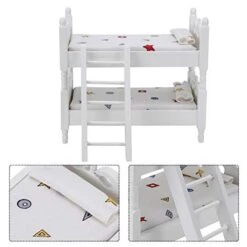 - Full Bed Set—Each pack comes with a doll furniture wooden bunk bed along with a mattress, mattress sheets, and pillows; making it the perfect choice for adding a classy and elegant touch to your doll house decor.