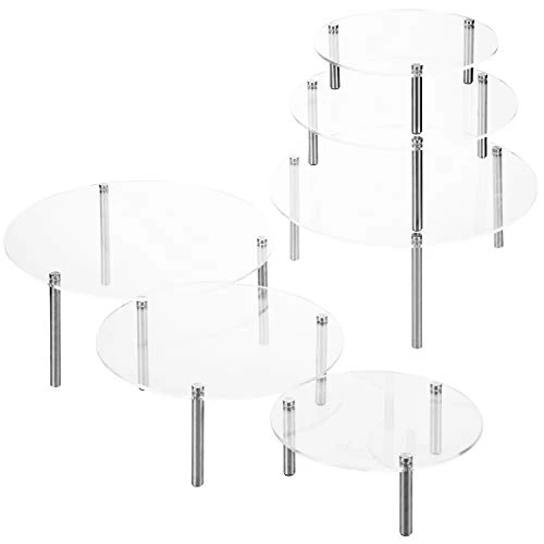 MyGift 6-Piece Set Countertop Round Clear Acrylic Server Dessert & Bakery Display Riser Stands