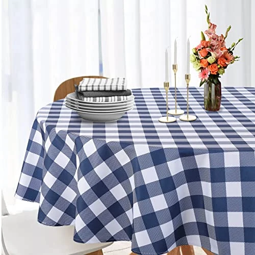 - 💐WIDELY USED: This navy blue gingham tablecloth is great for picnic, camping, wedding, restaurant, buffet,birthday party, Easter Day, Halloween, Thanksgiving and Christmas Day. Our tablecloths are suitable for every round tables. This buffalo plaid table cloth can be used not only on indoor and outdoor round table, but also to decorate the doors or walls, which is sure to get envious looks from friends and visitors.